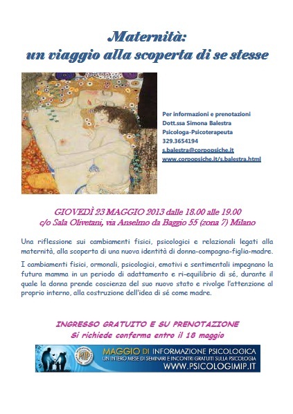 Incontro, condotto dalla Dott.ssa T. Compare e dalla Dott.ssa S. Balestra, dedicato al tema dell’esperienza interiore vissuta dalle donne che diventano madri